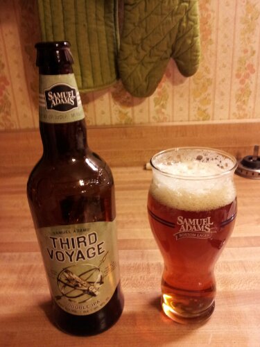 For a long time, I had a love/hate relationship with IPAs. They were too bitter, too strong tasting, too hoppy. Now I feel like I could go the rest of my life never drinking anything else. So when I saw a new Sam Adams Double IPA, (Third Voyage) I ran and grabbed my specially designed, high tech Sam Adams guzzlin’ glass and filled it to the brim with hoppy.